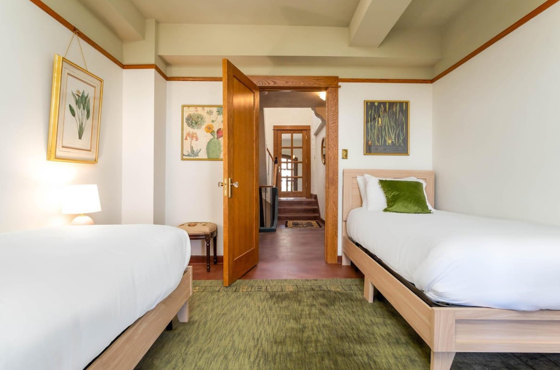 Upstairs, the Miner’s Wing offers peaceful bedrooms, private lounges, a co-working area, and even a vintage record-player nook. The Art Studio invites creativity with natural light, paints, and inspiring décor.