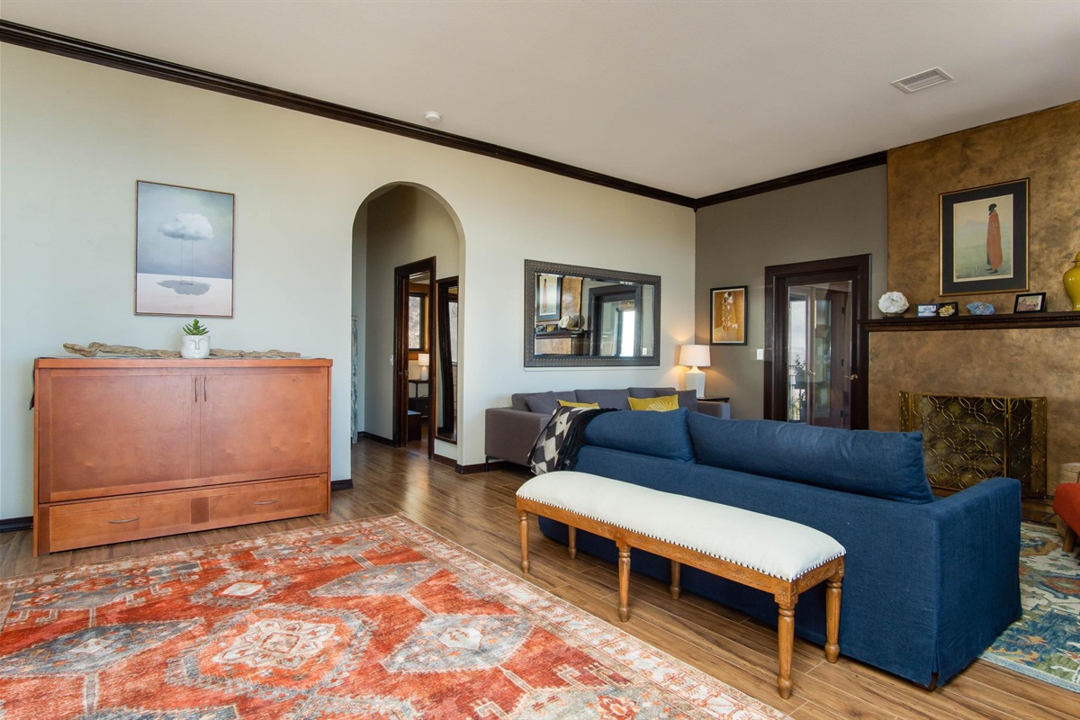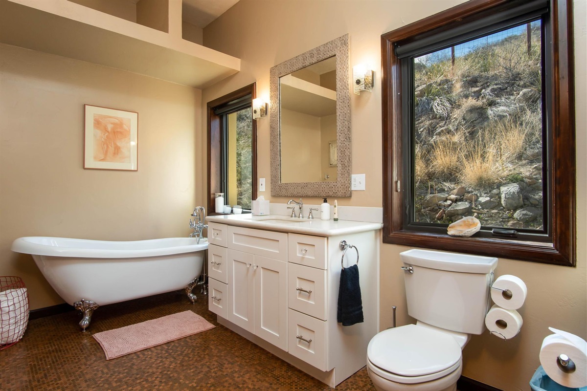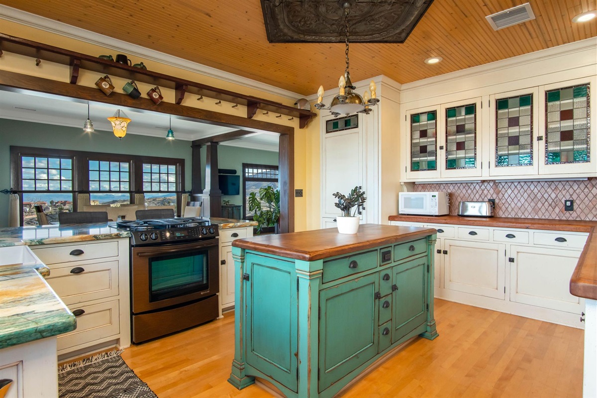 The chef’s kitchen is fully equipped for gatherings, featuring dual ovens, multiple refrigerators, and a six-burner range. Private chefs and catering can be arranged upon request, or guests can explore Jerome and Cottonwood’s renowned dining scene.