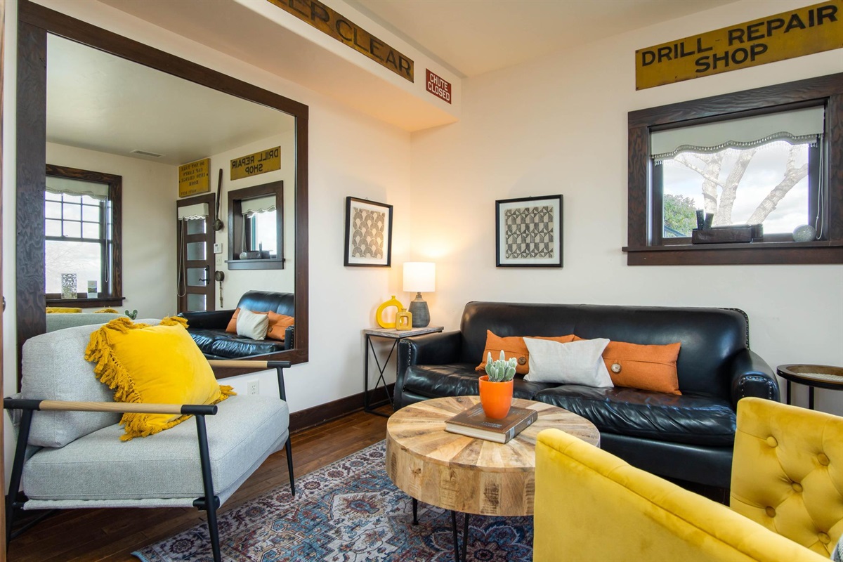 The Geologist’s House is a beautifully restored two-story historic property set apart from The Little Daisy Estate. Originally home to the chief geologist of the mines, this unique residence blends early-1900s character with modern comfort.